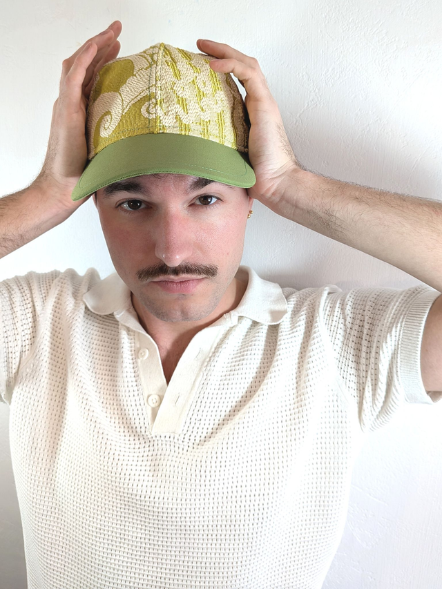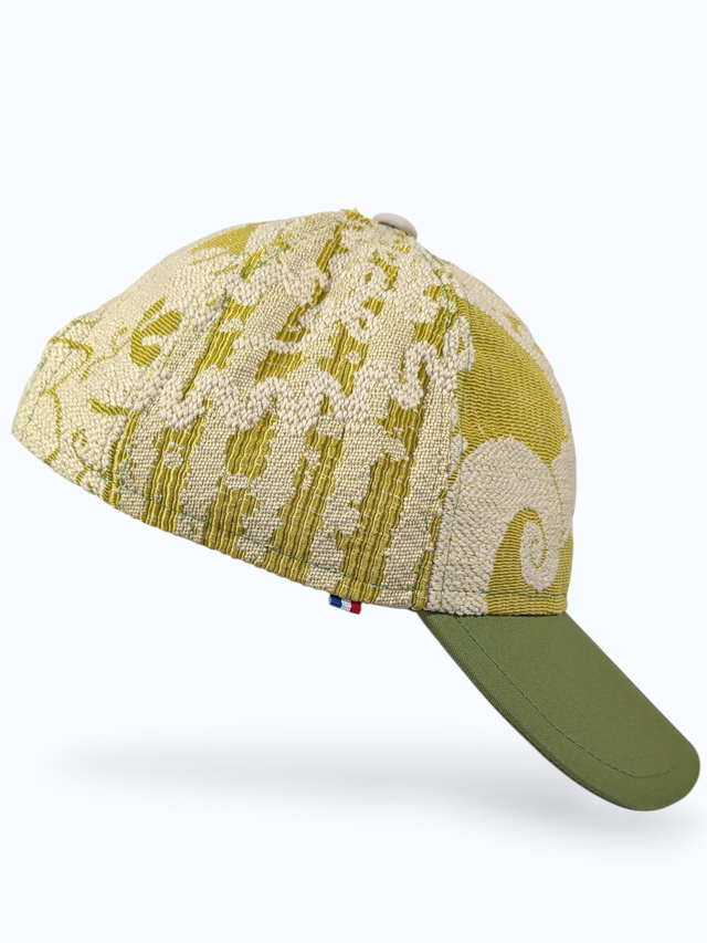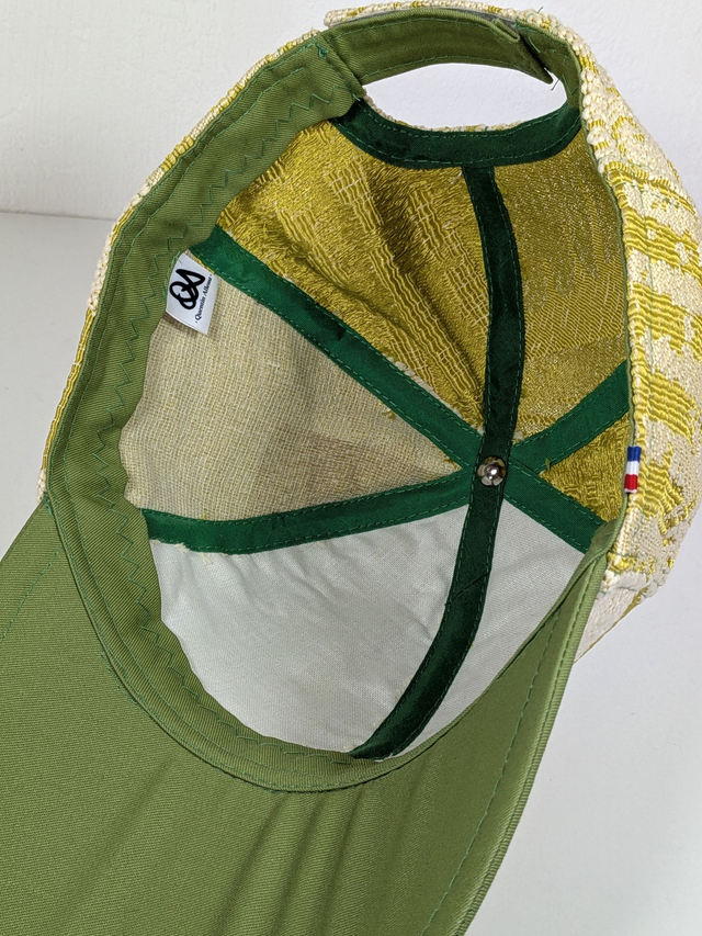 Cette casquette est une pièce unique entièrement fabriquée à la main à Angers.
