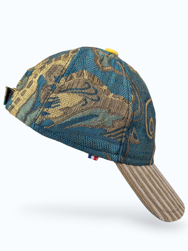 Cette casquette est une pièce unique entièrement fabriquée à la main à Angers.