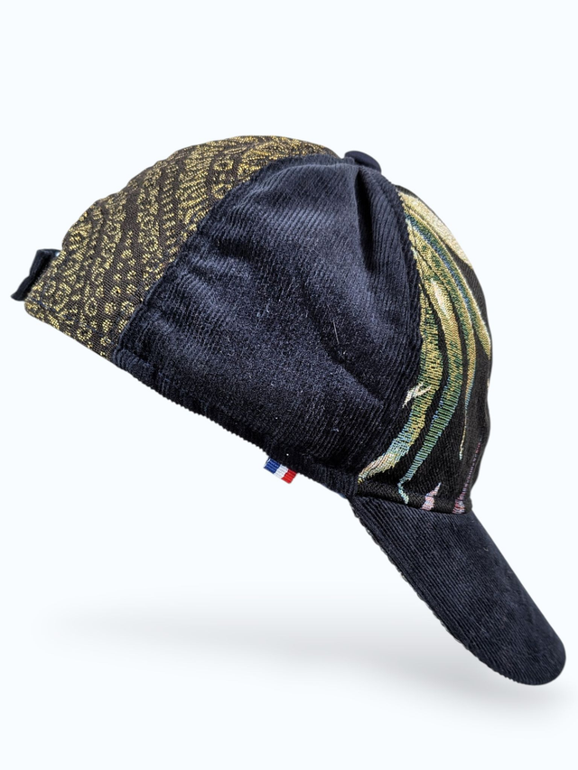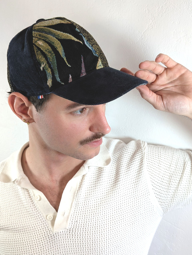 Cette casquette est une pièce unique entièrement fabriquée à la main à Angers.